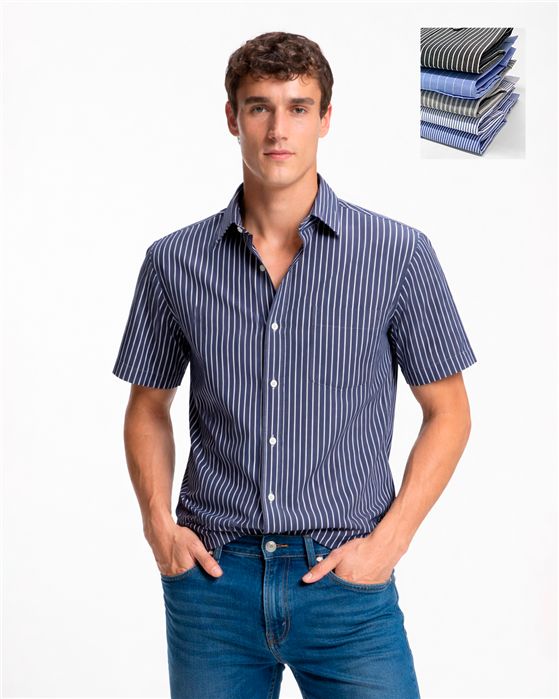 Color: Talle: 40 42 44 46 48 50 52 54 Favoritos 021 - Camisa Rayada Clásica Manga Corta Favoritos $ 10.690 Precio con Imp. Nacionales: $ 12.934,90 Talles / Colores Color: Talle: 40 42 44 46 48 50 52 54